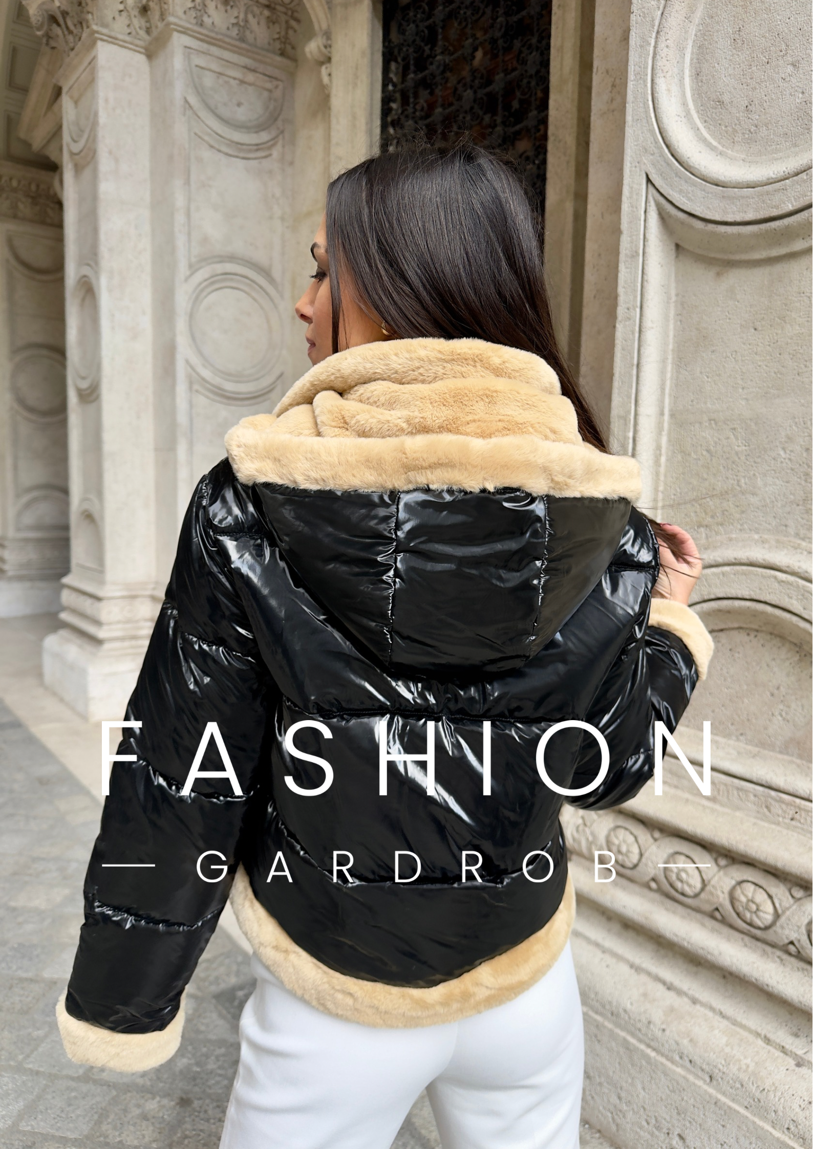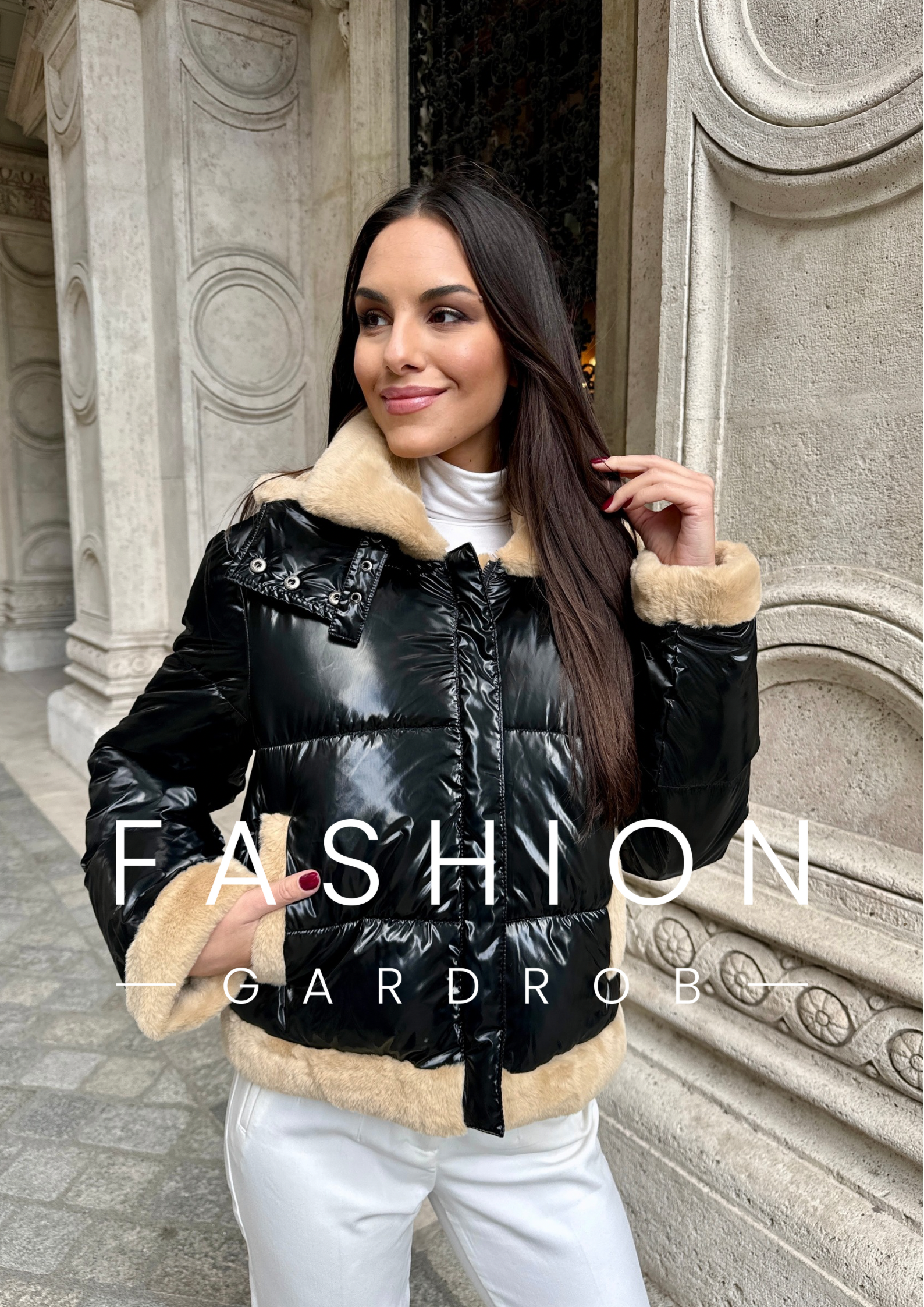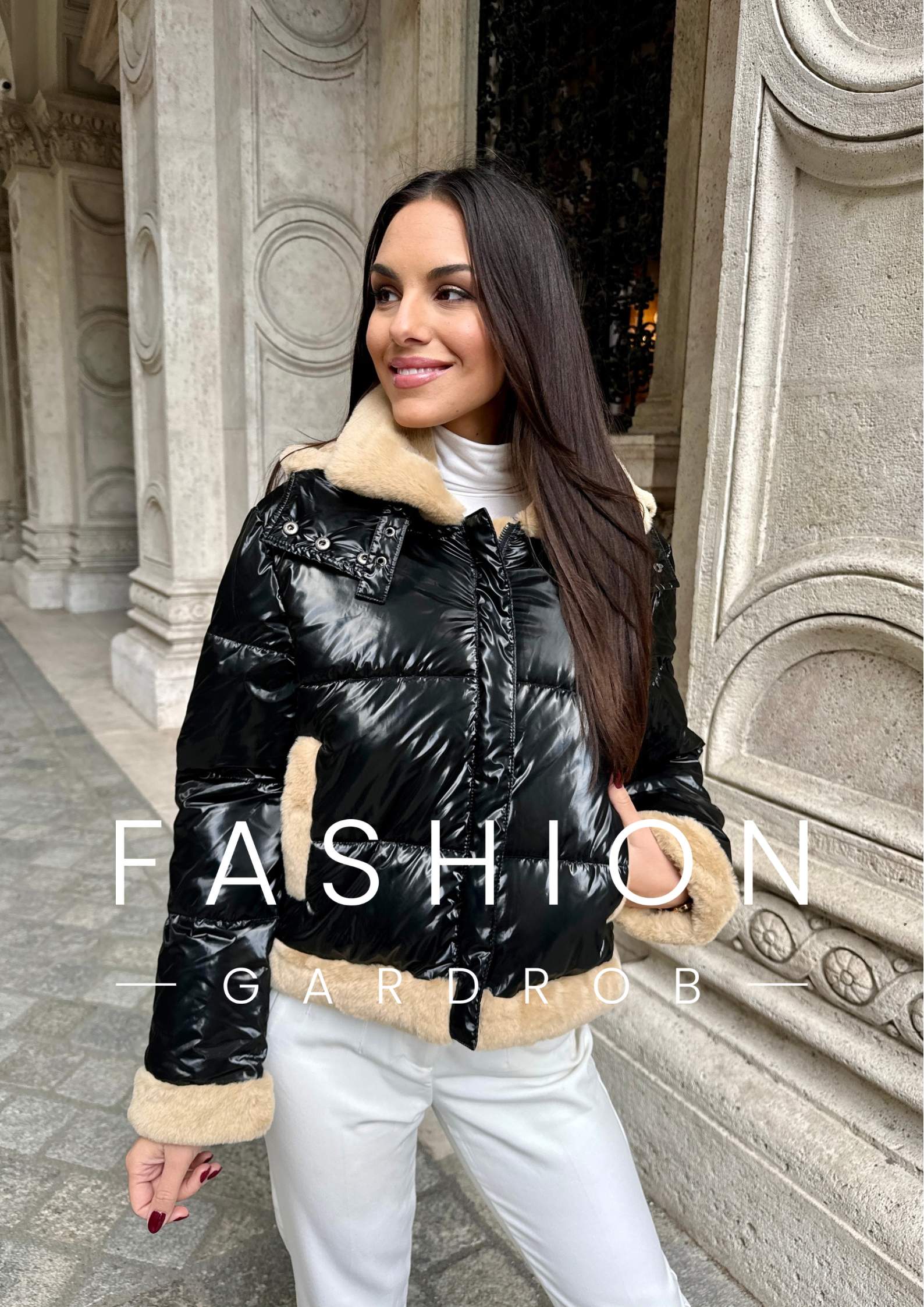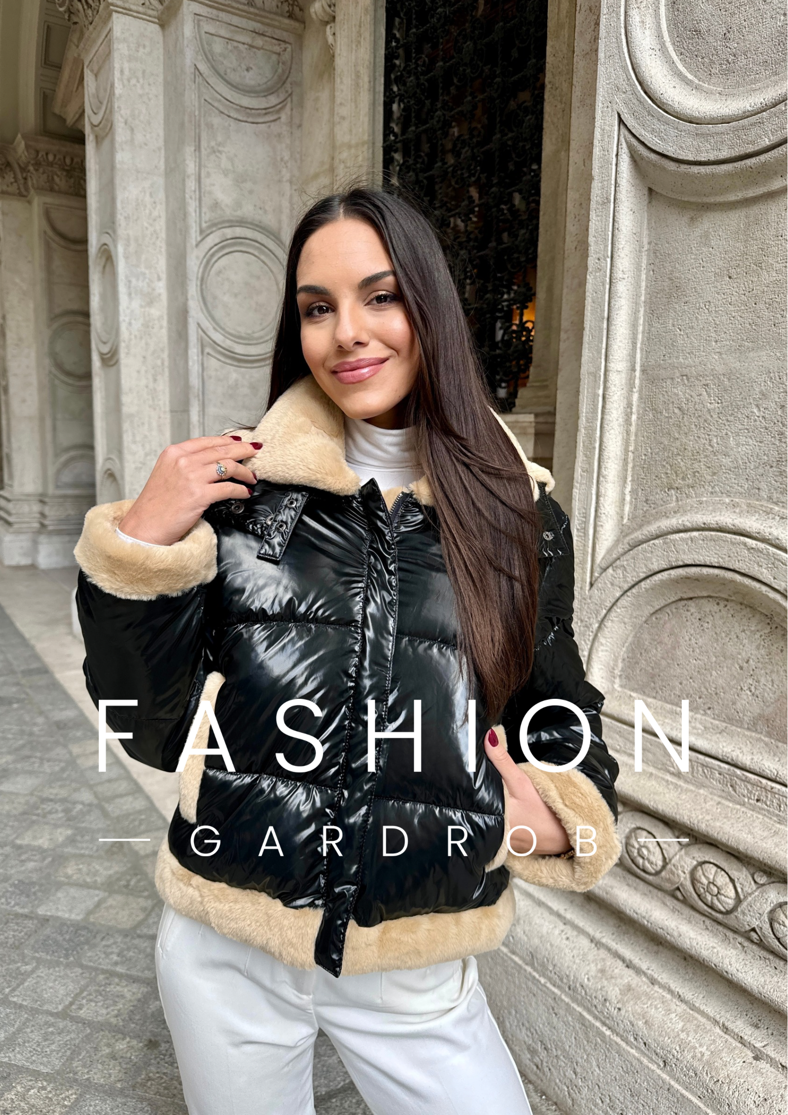 Ez a stílusos, fekete pufi kabát puha, bézs műszőrmés béléssel és szegéllyel rendelkezik, amely nemcsak melegséget, hanem divatos kontrasztot is biztosít. A fényes, vízlepergető külső modern megjelenést kölcsönöz, míg a vállrészen található aprólékos díszítés tovább emeli a kabát egyediségét. Ideális hideg időben, jól kombinálható mind hétköznapi, mind elegánsabb öltözékekkel, így stílusos és kényelmes viseletet biztosít.