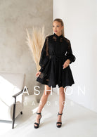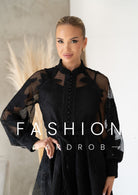 A Velvet Bloom ruha a romantikus elegancia és a kifinomult stílus találkozása. Légies mesh anyagát nagyvirágos hímzés díszíti, mely különleges textúrát és exkluzív megjelenést kölcsönöz. A gombos elülső rész és a finoman hangsúlyos derékvonal nőies sziluettet teremt, míg a bővebb ujjakkal játékosan könnyed hatást sugároz.