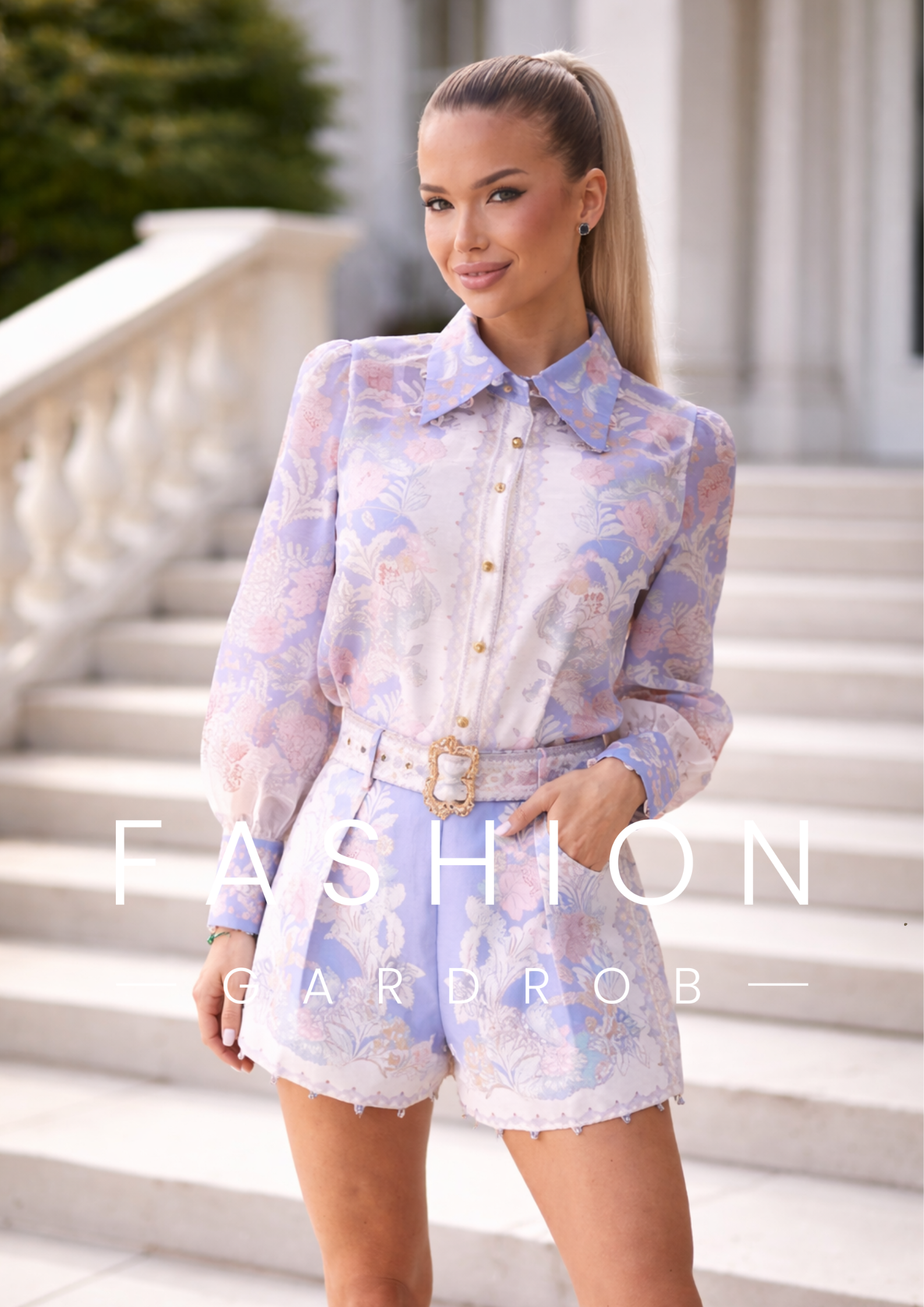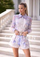 A Liliom Álom Szett a romantikus elegancia és a modern nőiesség tökéletes találkozása. A finom, pasztell virágmintás anyag légies könnyedséget ad a megjelenésnek, míg a strukturált gallér és az arany gombok kifinomult karaktert kölcsönöznek.